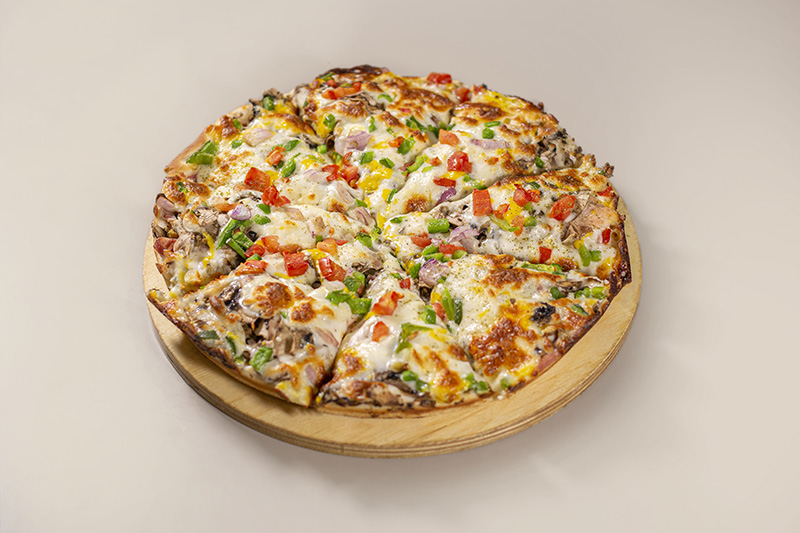 زبان گوساله + فلفل دلمه رنگي + پنير پيتزا + قارچ